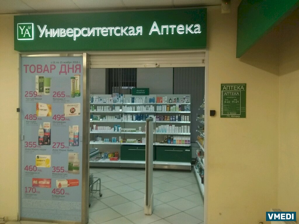 Аптечное учреждение под названием «Университетская Аптека», которое располагаемся на площади Конституции, 7, является одним из филиалов известно сети современных аптек частного формата. Главное преимущество данной аптеки – это, в первую очередь, обширный ассортимент доступных для покупки товаров, а также высокий уровень обслуживания и сервиса, предполагающий профессиональную помощь компетентных продавцов-консультантов. Планировка учреждения предполагает так называемый открытый доступ к товарам покупателям, что позволяет последим детально изучить представленный ассортимент. Вся продукция сертифицирована и отвечает самым строгим стандартам качества.